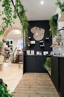 El principal fin es conseguir crear una armonía entre todos los pisos. Los materiales que predominan a lo largo de todo el local son las paredes compuestas de minerales puros, los muros de piedra, y los nuevos materiales ecológicos como modelo de Tienda Ecoeficiente. Por esta razón, la madera de pino es el material más visto a lo largo de toda la tienda, con un acabado rugoso, respentando el ambiente luminoso de las estancias, sin perder el toque minimalista escandinavo.